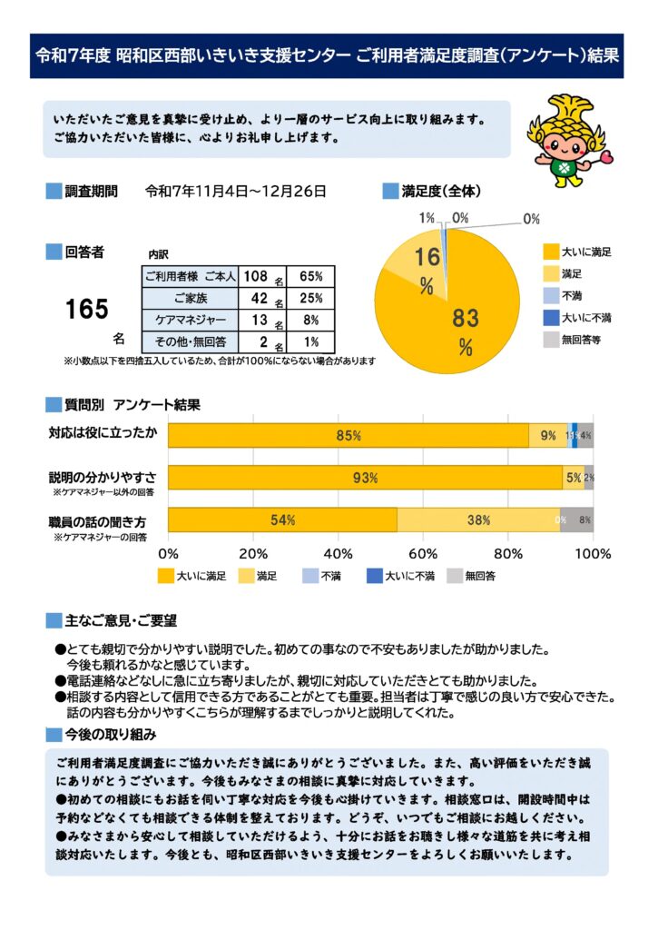 令和7年11月4日から12月26日までの期間において実施しました「ご利用者満足度調査」の調査結果がまとまりました。